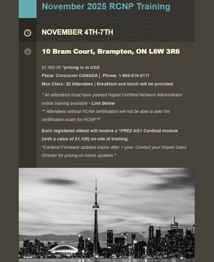 * All attendees must have passed Rajant Certified Network Administrator online training available – Link Below